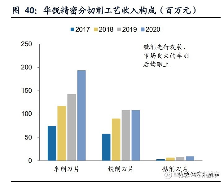 产品突破路径:集中攻关。数控刀片根据工艺与加工材质的不同具有繁多的类别, 对后发企业来说,集中攻关,以一点突破带动整体突破是可行的策略。欧科亿着眼 于工件材质,首先完成钢件的攻关,接下来依次开拓不锈钢及铸铁材质业务。华锐 精密着眼于切削工艺,首先在铣削方面取得突破,随后带动市场空间更大的车削业 务。集中攻关使国内企业取得了最初的市场突破,但无论是开拓高端市场,还是提 供整体解决方案,都要求国内企业下一步提升产品的全面性。