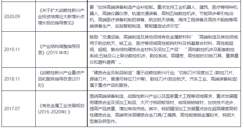 为了响应国家号召,各省市积极推进刀具制造行业发展,因地制宜发布了相关政策,《福建省“十四五”制造业高质量发展专项规划》提出围绕国家重大战略需求及福建省产业提升需要,重点发展一批关键战略材料,提高材料成品率和性能稳定性,完善原辅料配套体系,实现产业化和规模应用。重点发展硬质合金工具、刀具、数控刀片、整体刀具等高端产品。
