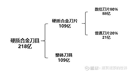再看硬质合金内部结构:硬质合金刀具分为整体刀具和刀片,占比各为50%。根据民生证券的大致测算,刀片中有20%为普通刀片,剩余80%为数控刀片。未来,数控化率上升,数控刀片逐步替代普通刀片。