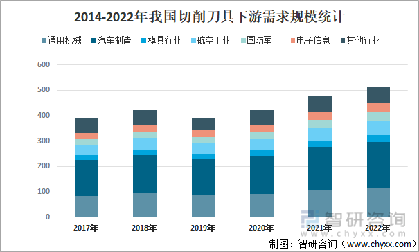 2014-2022年我国切削刀具下游需求规模统计
