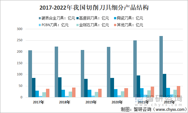 2017-2022年我国切削刀具细分产品结构