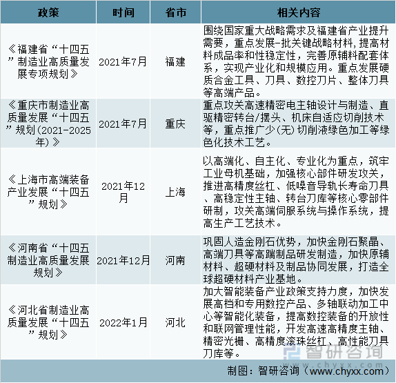 部分省市切削刀具行业相关政策
