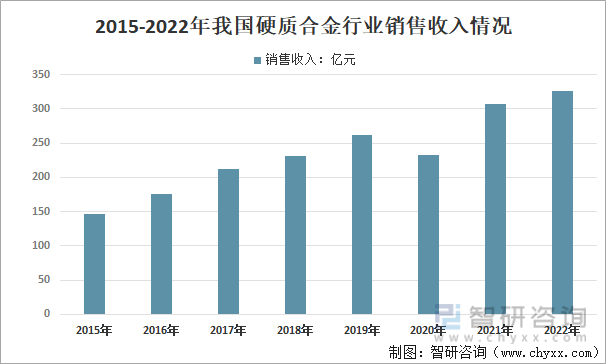 2015-2022年我国硬质合金行业销售收入情况