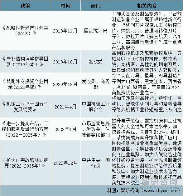 切削刀具行业相关政策